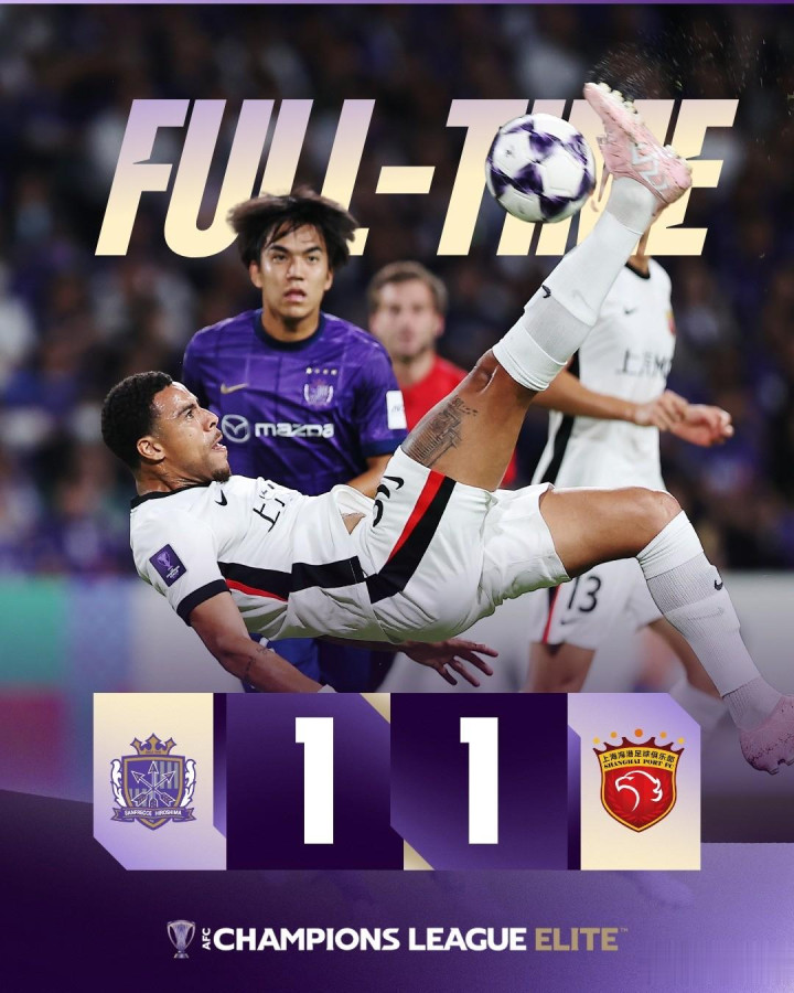 最终,90分钟战罢,上海海港客场与广岛三箭1-1握手言和,取得本赛季的第一个积分。